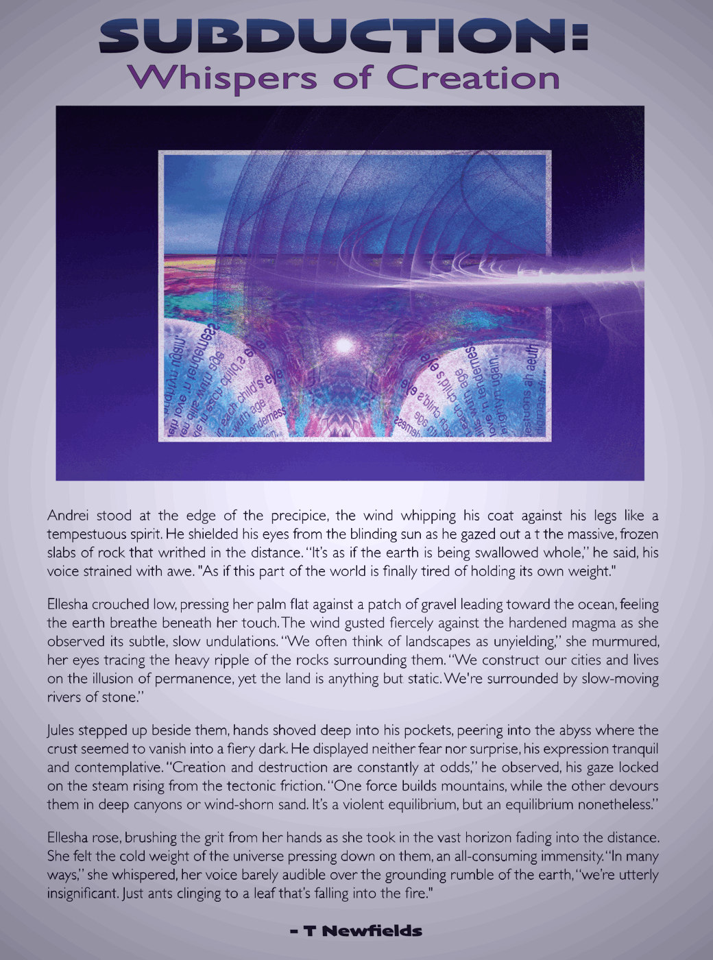 Jules stepped up beside them, hands shoved deep into his pockets, peering into the abyss where the crust seemed to vanish into a fiery dark. He displayed neither fear nor surprise, his expression tranquil and contemplative. “Creation and destruction are constantly at odds,” he observed, his gaze locked on the steam rising from the tectonic friction. “One force builds mountains, while the other devours them in deep canyons or wind-shorn sand. It’s a violent equilibrium, but an equilibrium nonetheless.”