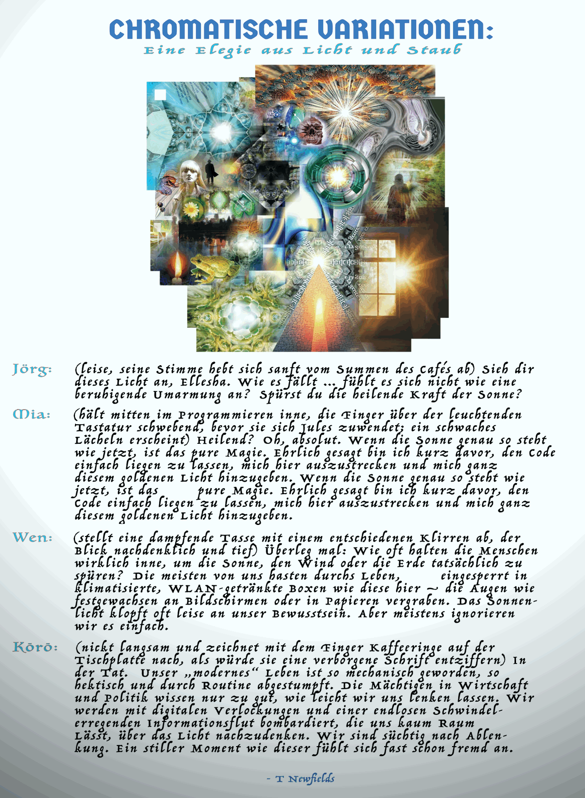(leise, seine Stimme hebt sich sanft vom Summen des Cafés ab) Sieh dir dieses